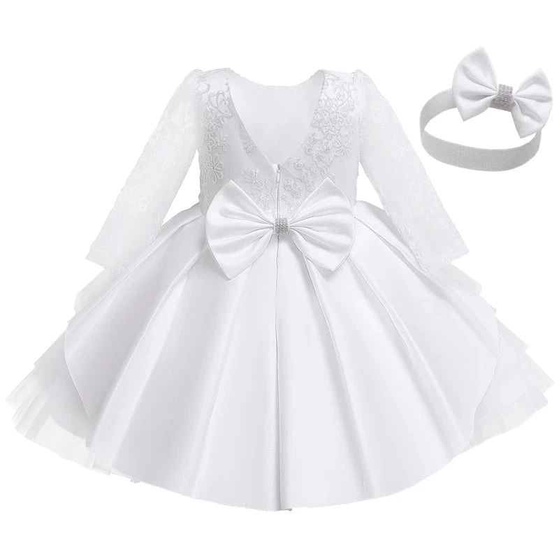 C’est la tenue parfaite pour votre nourrisson, si un baptême ou une cérémonie approche à grands pas ! Une composition en dentelle de haute qualité se présente pour les manches longues et ornementant le bustier de jolis motifs floraux pour un rendu ravissant.