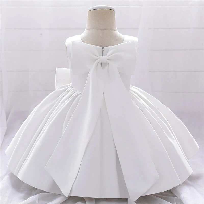 Délicate et raffinée, notre robe pour bébé blanche est réalisée avec un tissu noble satiné pour apporter confort et brillance à la tenue. Un joli nœud en ruban et des minis bord festonnés pour un style classique et moderne, elle est parfaite pour accompagner votre petite fille lors d’une cérémonie, ou bien ses premiers anniversaires.