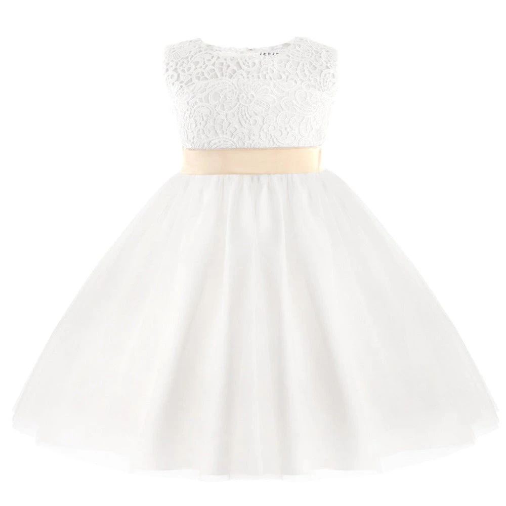 Capturant l’innocence de l’enfance, cette robe pleine de sagesse est une pièce qui fera rêver votre petite fille. Fabriqué à partir de notre dentelle douce, le corsage de cette robe présente de jolis motifs originaux, jusqu’à la taille. Une tenue blanche spéciale et unique pour porter un souvenir intemporel pour les années à venir.