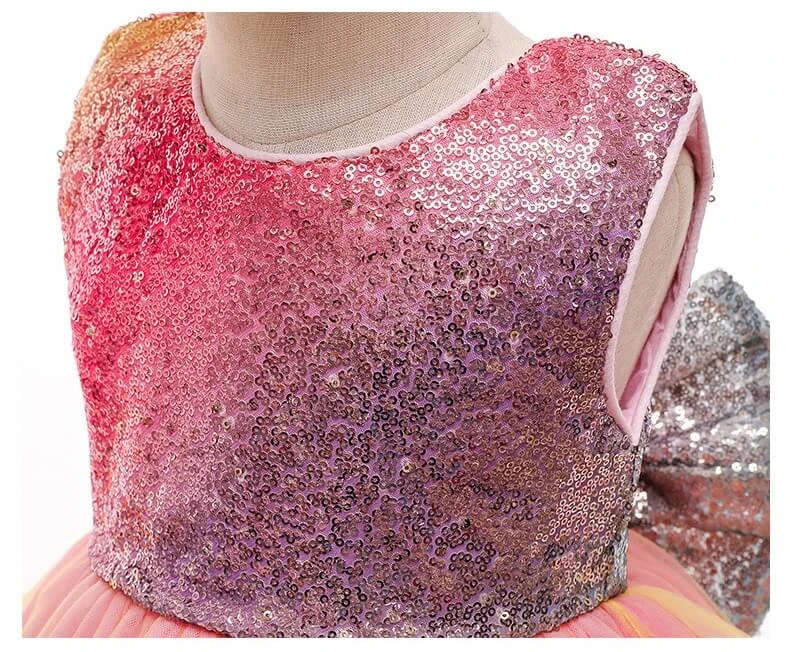 Des paillettes et une magnifique couleur rose, aucune petite fille ne pourra résister à la prestance de cette robe brillante ! Légère et ondulée, la jupe en tulle offrira à votre bébé un sentiment royal comme les princesses des dessins animés, afin de l’initiée aux merveilleux contes de fées.