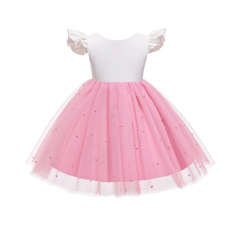 Un blanc flocon pour assister à la cérémonie avec prestance et une couleur rose pour plaire à votre petite fille afin que le moment passé dans sa nouvelle robe soit merveilleux. Ornée de petites perles, la jupe en tulle rose s’accompagne d’une doublure intérieure en coton pour assurer légèreté et confort dans la tenue.
