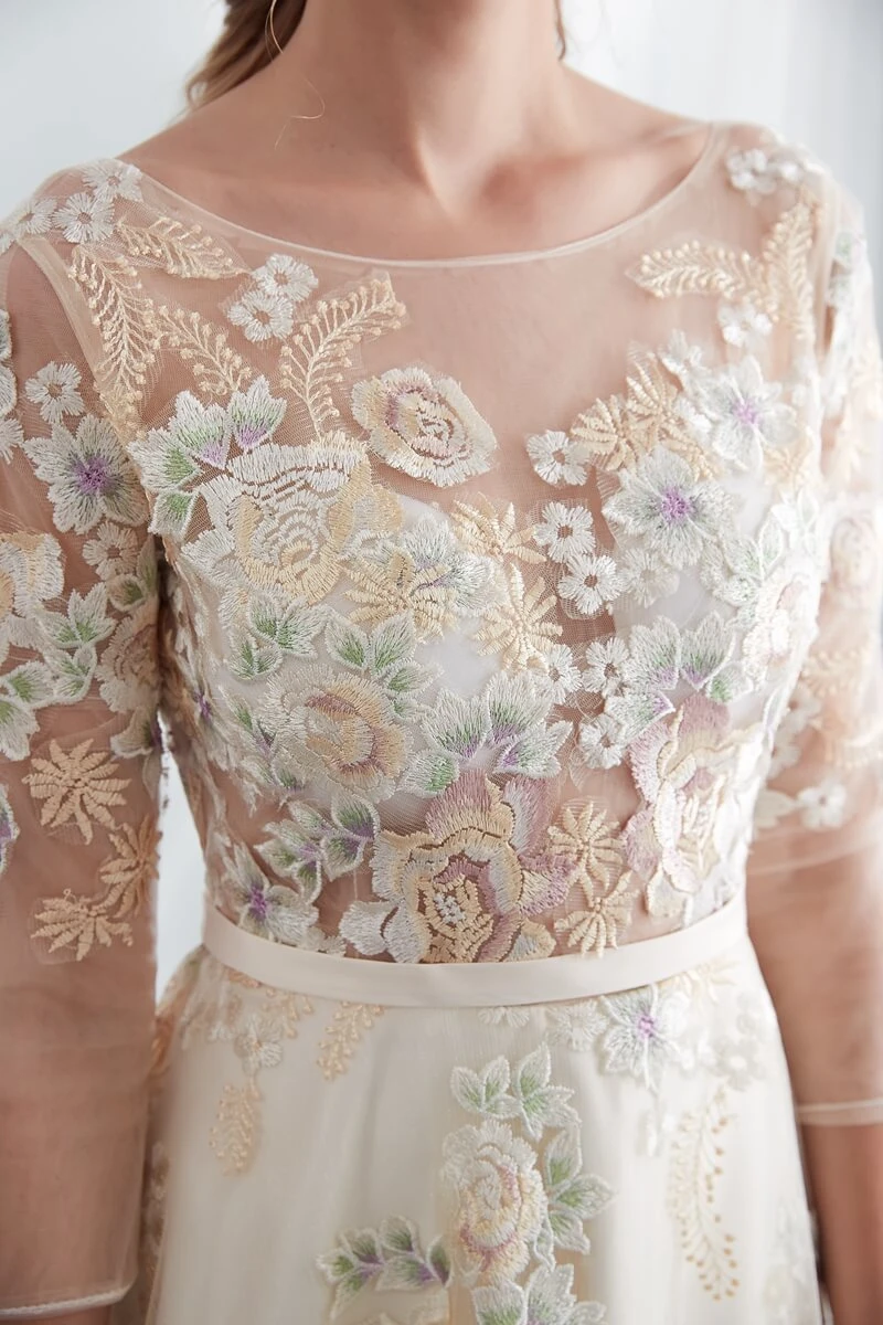 Les applications du haut dans un look floral gracieux sont un autre accroche-regard et contribuent à la touche de finesse. Le bustier ainsi que les manches se présentent dans un style illusion pour apporter de la transparence et de la légèreté au modèle pour que vous puissiez être dans le plus grand des conforts !