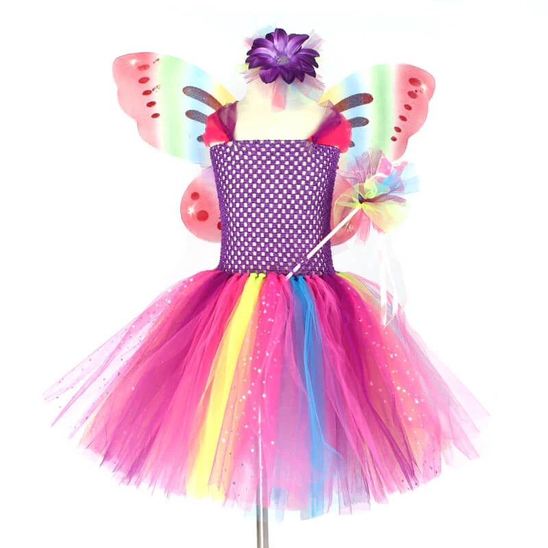 De majestueuses ailes de fées et une robe multicolore, votre fille ne se passera plus de sa nouvelle tenue féerique ! C’est le cadeau parfait pour son anniversaire, ou bien son noël, elle pourra s’habiller en petite fée quand elle voudra pour vivre des aventures riches en féerie !