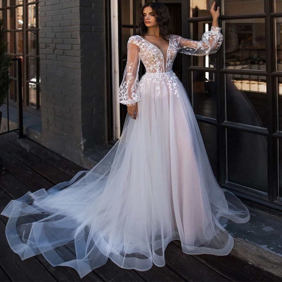Robe de mariée princesse manches longues