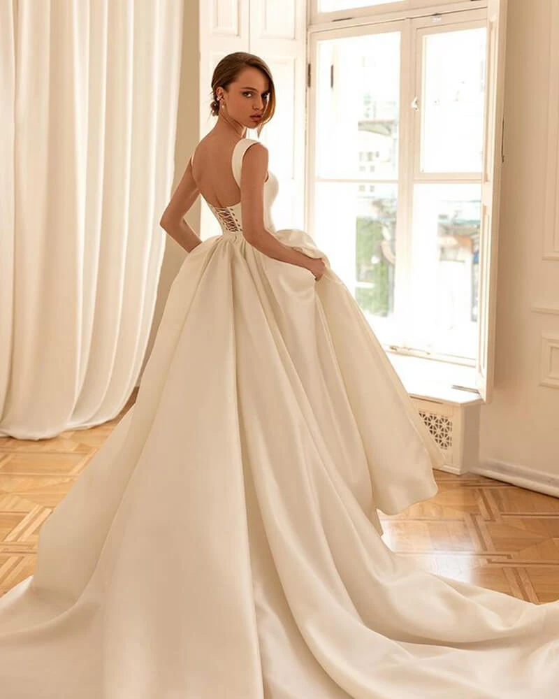 Fêtez cette journée magique dans la robe de mariée princesse corset en satin