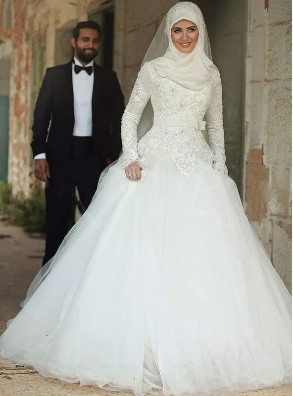 Un jour qui doit rester dans votre mémoire pour le reste de votre vie se doit être passé dans une magnifique robe de princesse. Avec une inspiration de tenue de mariée musulmane, cette robe voilée entièrement blanche vous permettra de passer la cérémonie et le reste de la journée en toute beauté.