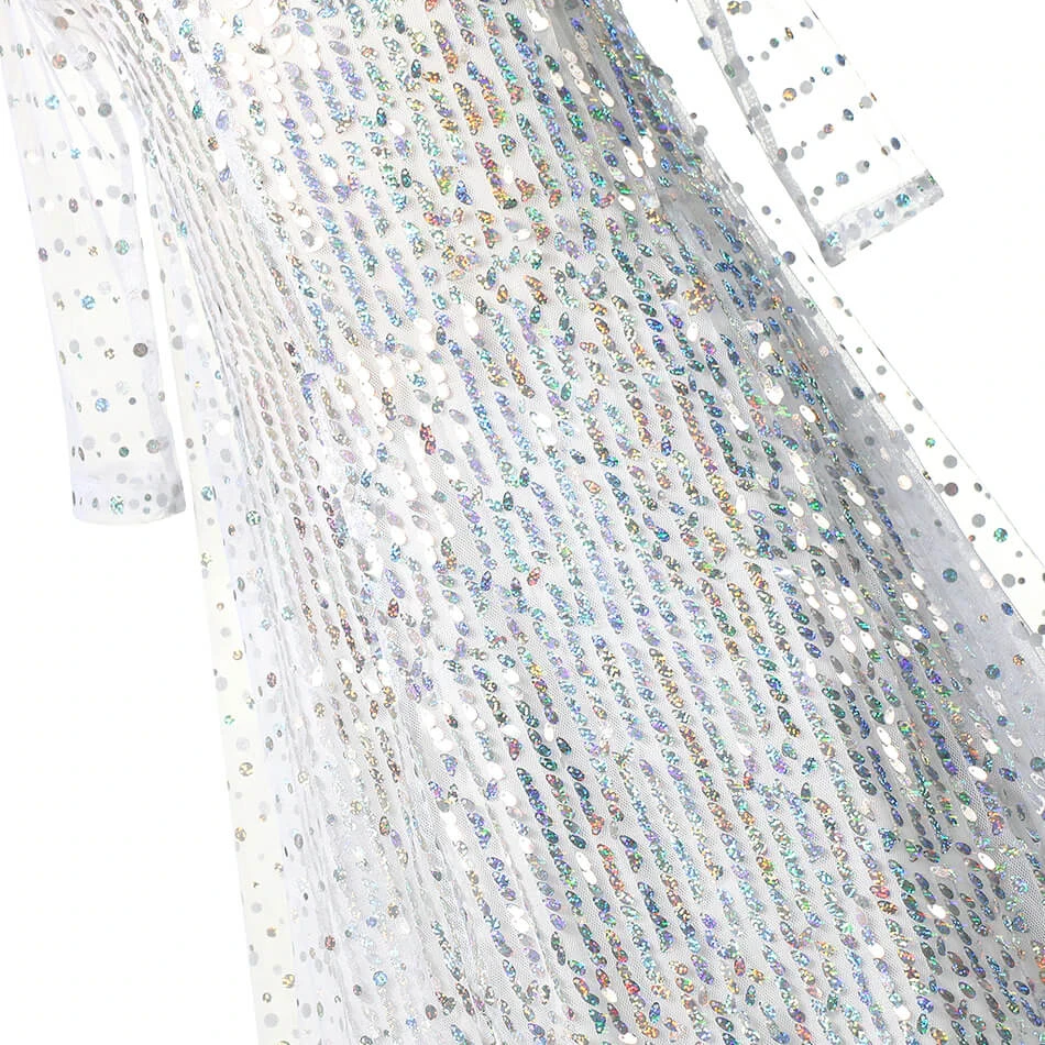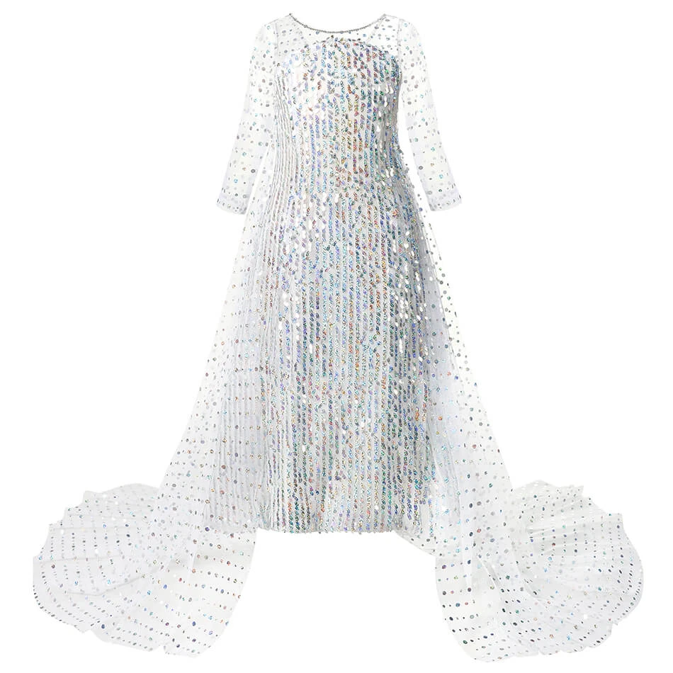 Cette belle et longue robe de princesse est exactement ce que les petites filles du monde entier rêvent chaque jour après avoir regardé le dessin animé Disney ! Les étincelles scintillent avec éclat grâce aux petites palettes brillantes qui ornent le déguisement.