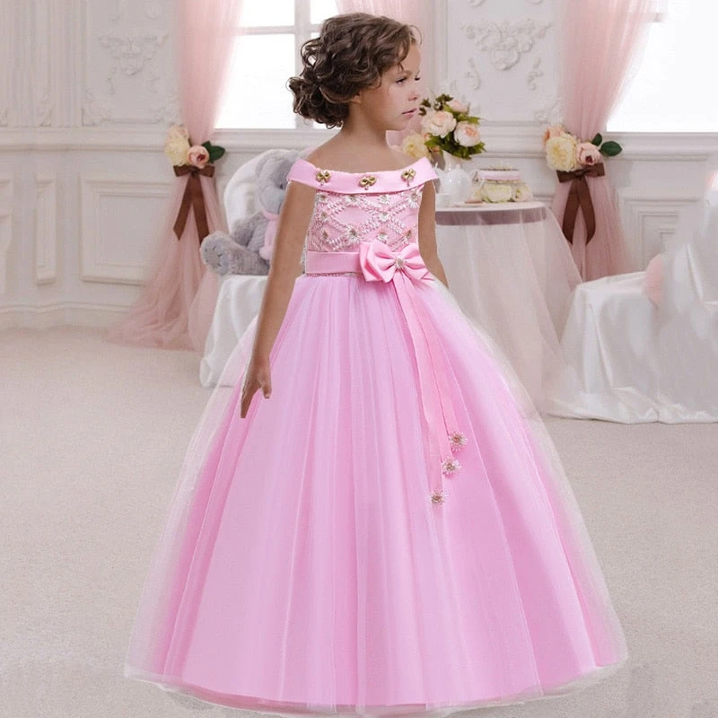 Cette robe de princesse est éblouissante et parfaite à porter lors d’une célébration ou d’une fête ! Elle est hautement détaillée sur son bustier pour un fabuleux rendu. Le corsage est recouvert de doux motifs en dentelles qui s’étendent jusqu’au dos de la robe et se termine par un joli nœud papillon en ruban. La jupe apporte volume et l’aspect bouffant grâce à une jupette intégrée et est entièrement doublée de coton doux apportant confort à la tenue de princesse rose.