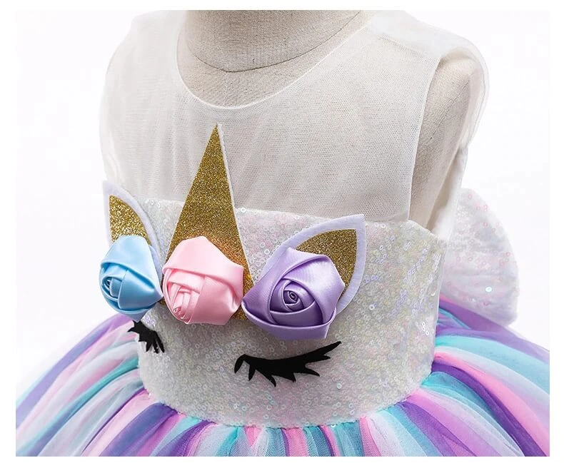 Nous vous offrons même le serre-tête assorti à la tenue de licorne afin que l’immersion soit grandiose au sein du pays imaginaire des licornes. Un voilage en tulle première qualité et un joli bustier illusion, votre bébé trouvera la tenue confortable. La voilà prête à rentrer dans l’aventure !