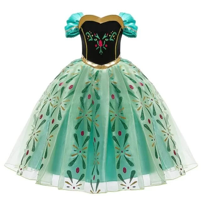 Vous souhaitez vous aussi incarner la Princesse Anna dans sa magnifique Robe issue du film la Reine des Neiges ? La voici ! Cette Robe noir et verte aux motifs rappelant la nature s’adapte à votre morphologie en restant très confortable grâce à son tissu de qualité.