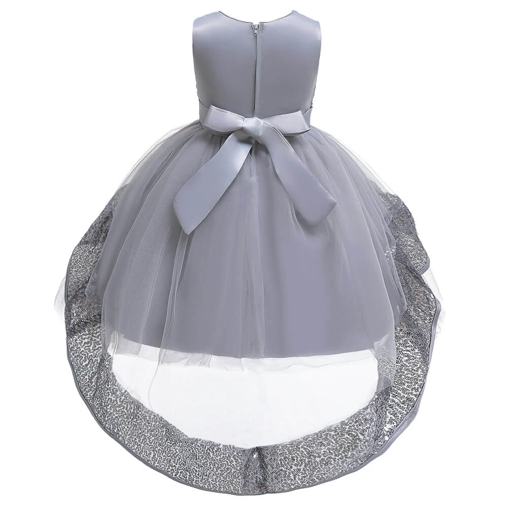 Telle une étoile, vous scintillerez de mille feux au sein de cette tenue recouverte de paillettes sur son bustier et la partie inférieur de la robe. Sa couleur peu commune lui apporte une grande originalité pour des occasions formelles comme une cérémonie. Accompagnez-la d’un de nos jupons pour avoir un rendu bouffant et très volumineux.