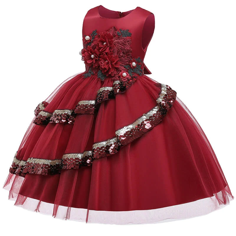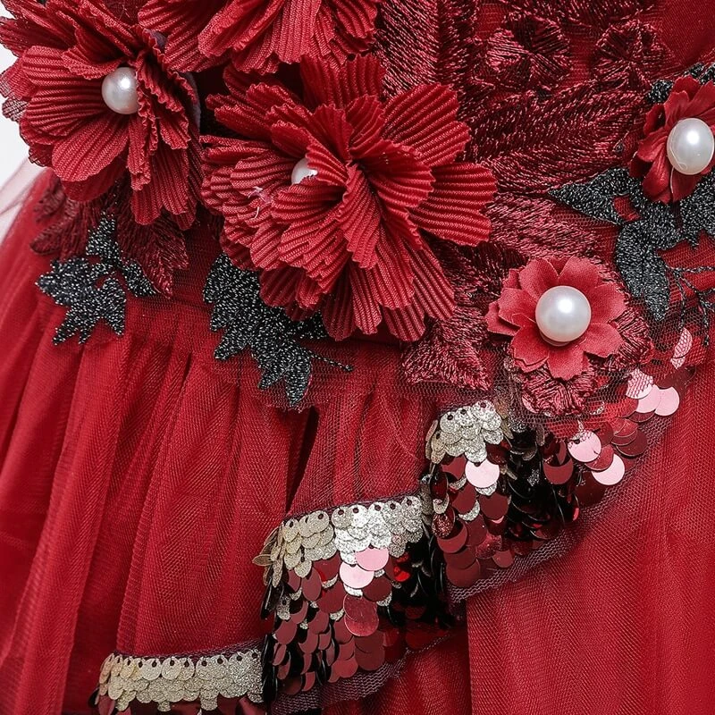 Une de nos robes les plus originales de la saison, notre robe bordeaux style princesse ne vous décevra pas ! Une volumineuse jupe en tulle et accompagnée de bandes pailletées, cette robe dispose d’une ample silhouette que toute fille pourrait vouloir. Fabrications douces, entièrement doublées.