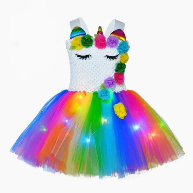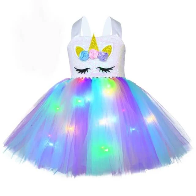 Finis les paillettes et les strass, avec cette Robe sophistiquĂ©e possĂ©dant un système Ă LED, votre enfant brillera comme une Ă©toile dans la galaxie. Choisissez lĂ en Rose, Bleu ou Multicolore, le corsage est en tissu blanc de haute qualitĂ©, accompagnĂ© de fleurs Ă pĂ©tales pour que vous soyez la plus belle. Le système de lumière est sans danger, il s’agit de toutes petites bandes lumineuses.